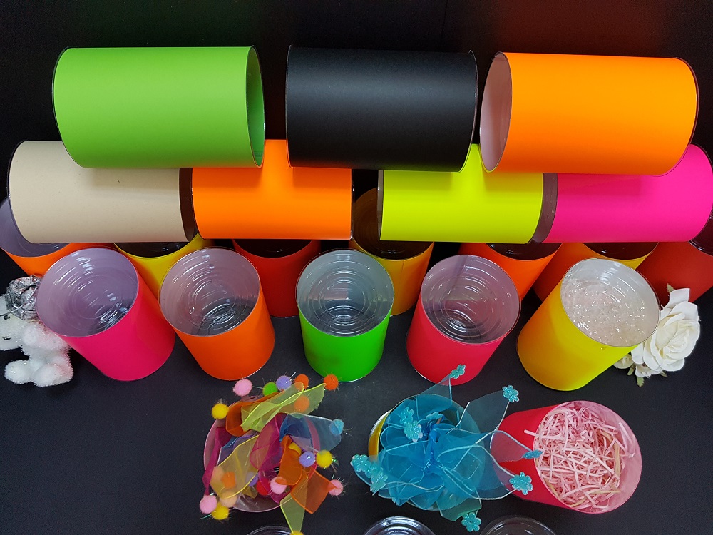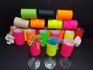 Optional, putem indoi marginea de sus sau de jos a cilindrului, pentru un aspect mai placut si o rigidizare mai mare a corpului. De asemenea, putem insera un carton colorat sau metalizat la baza cilindrului.