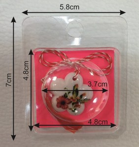 - exterior: 58x70x9mm - alveola: diametru 37mm - cartonul care se poate introduce in interior: 48x48mm Acest blister se poate folosi pentru obiecte mici (rezerve de farduri, martisoare etc). In interior se poate introduce un carton simplu sau tiparit. Blisterul se poate agata in raft.